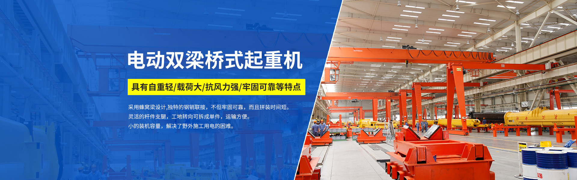 在野外施工場景中,用電往往是一大難題,而杭州起重機(jī)推出的電動雙梁橋式起重機(jī),為解決這一問題帶來了... 了解詳細(xì)>>2025-09-15杭州起重機(jī):電動雙梁橋式起重機(jī),自重輕與載荷大的巧妙融合